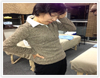 症状と問診:事務の仕事をしており、長い時間座りながらPCをやっているため腰の痛みを訴える。痛み自体は我慢できるほどの痛みだが、もう6年以上の年月が経過している。さらにぎっくり腰も年に二回のペース発症している。![]() |